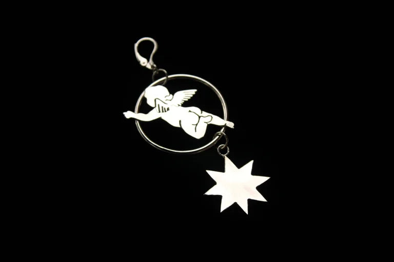 Measures 80mm from the top of the earring to the bottom of the octa gram.
