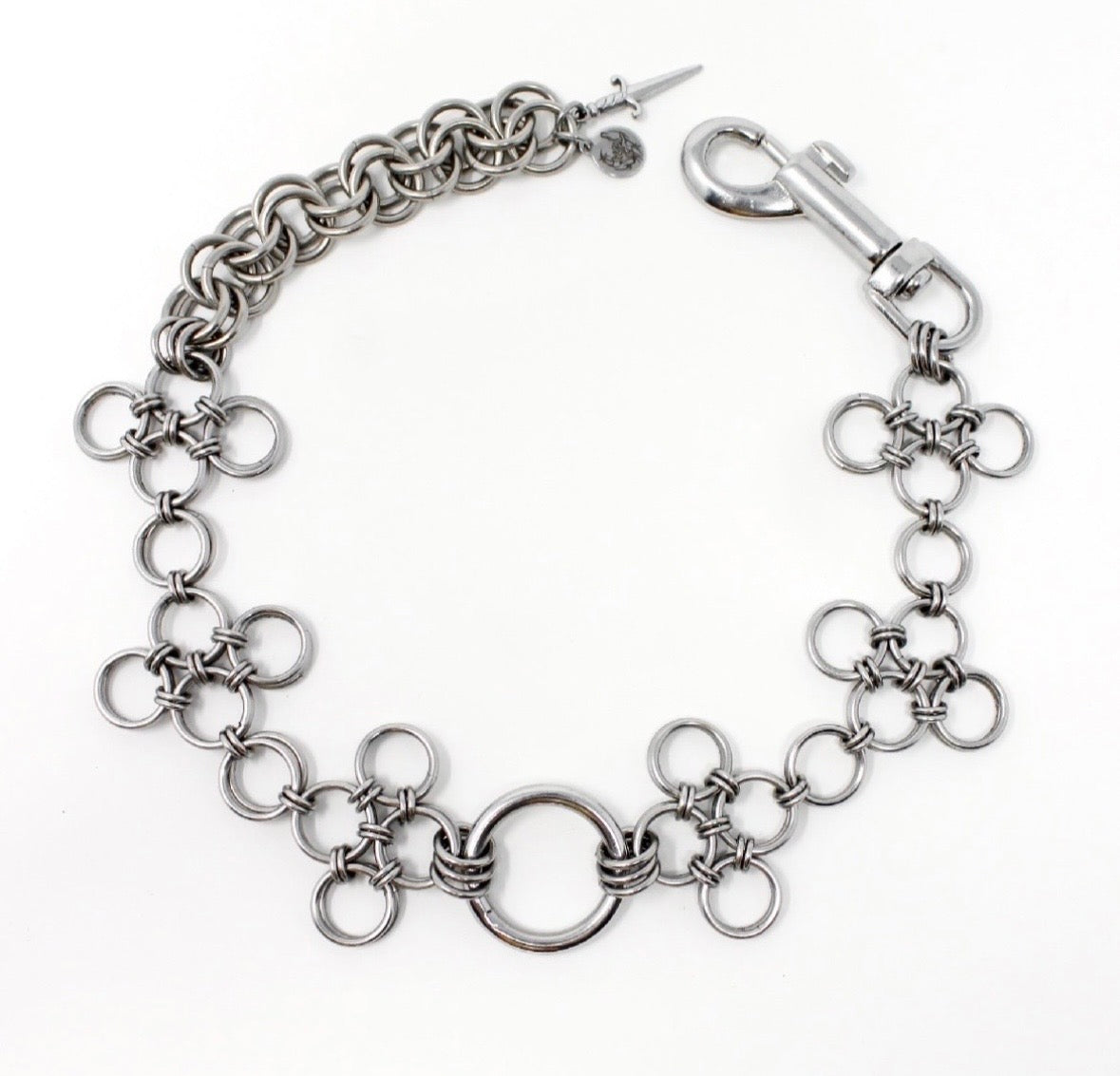Description: Chunky japanese weave O-ring choker with a statement clasp ($75)