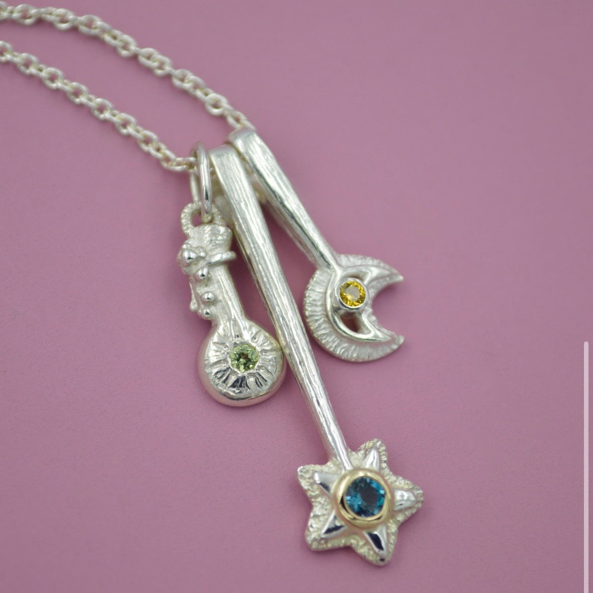 Moon Wand: Sterling silver with a 2mm yellow sapphire
