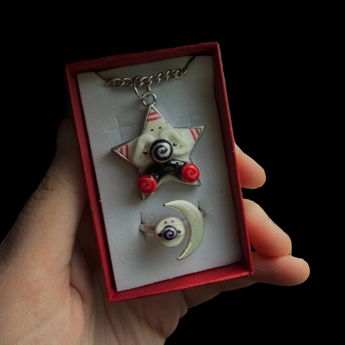 - Handmade clown necklace and ring bundle from @ArowynsRealm