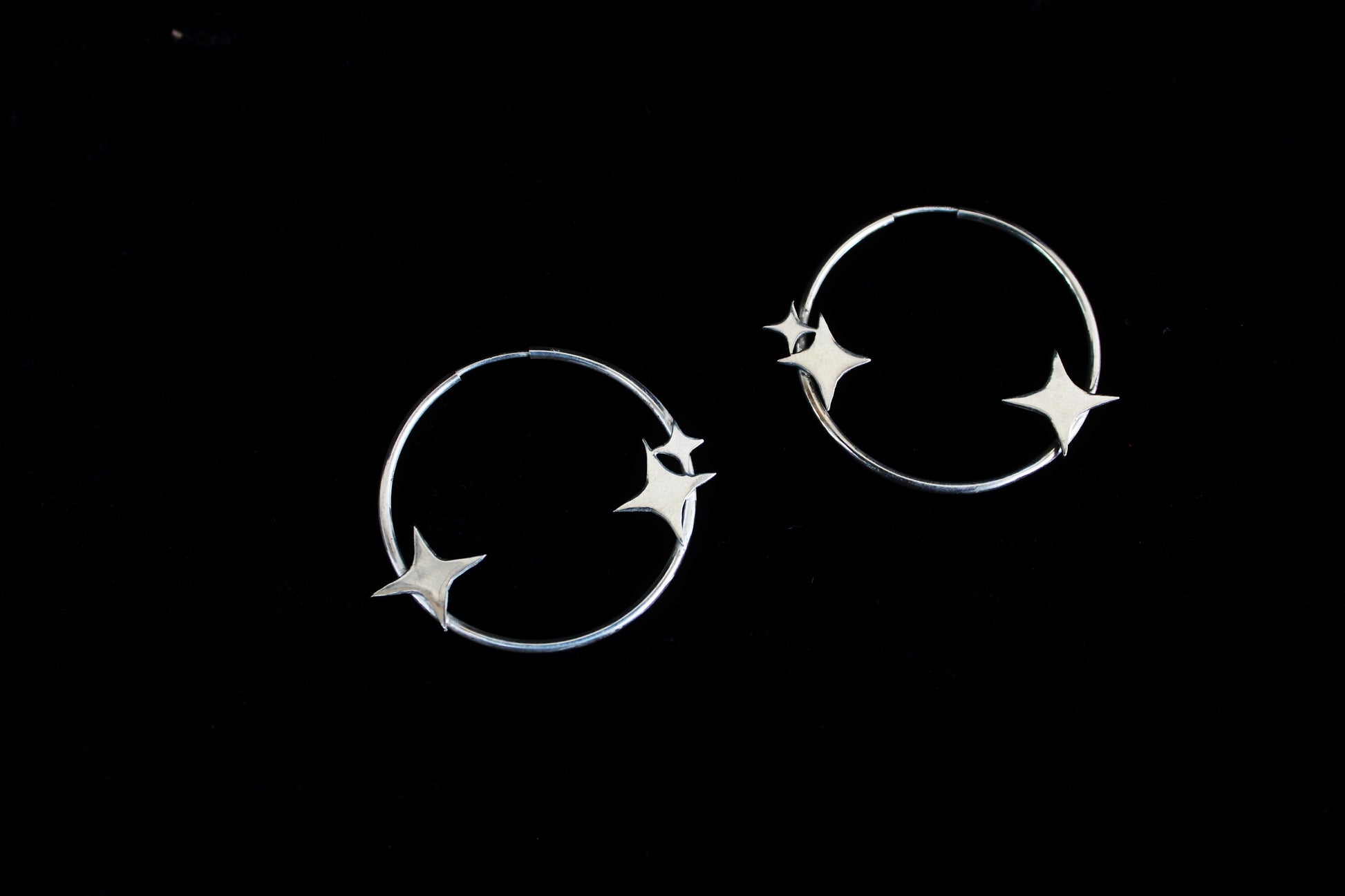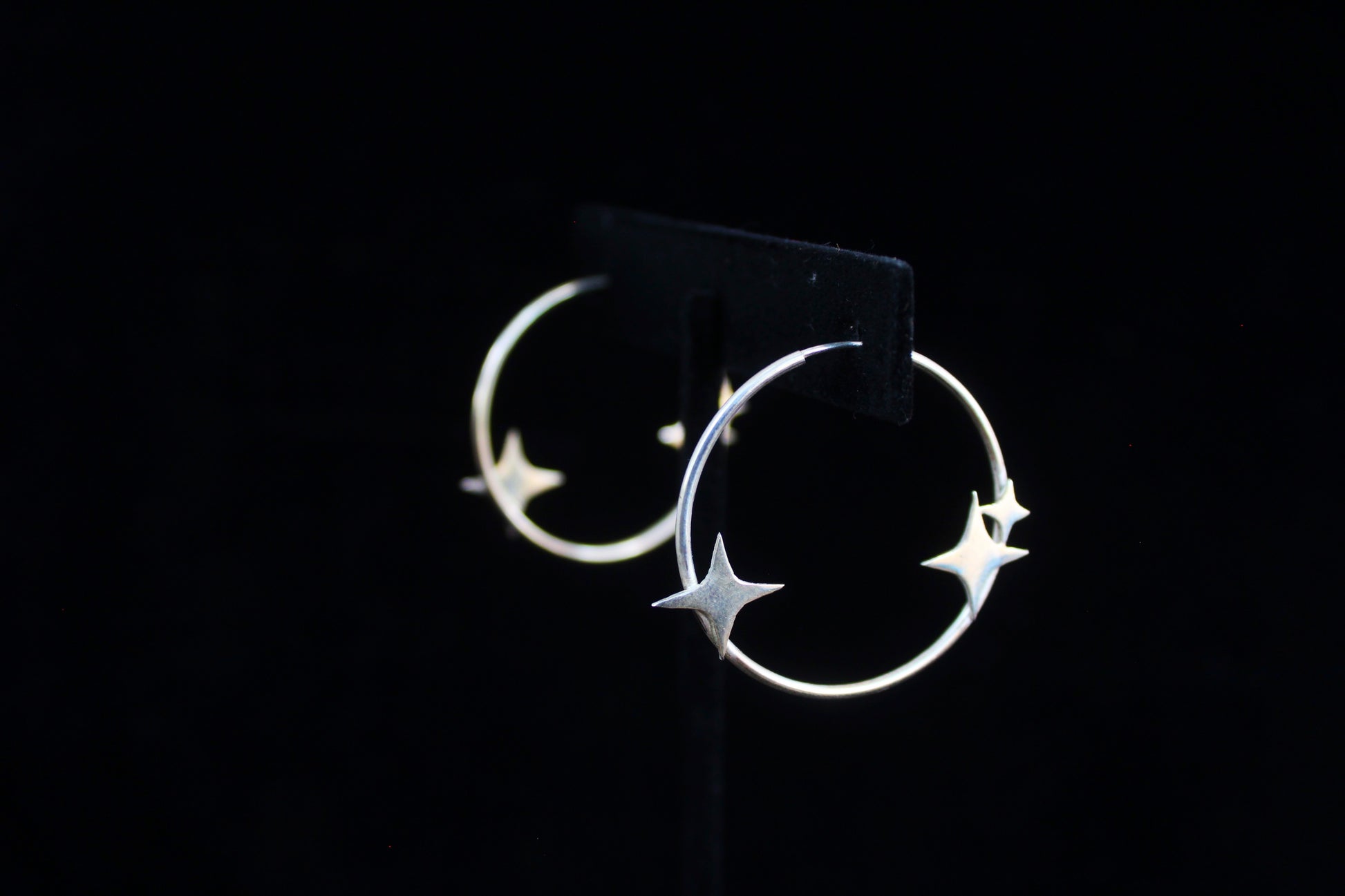 Threadless hoops featuring handcut accents. Measures 37mm from star to star.
