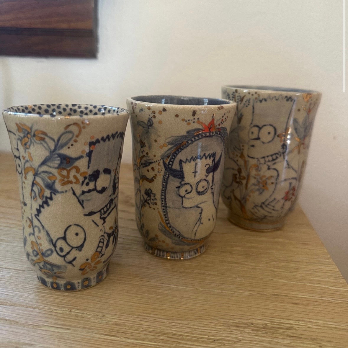 - Set of three handmade Bart Simpson cups by @jennieekstrand.