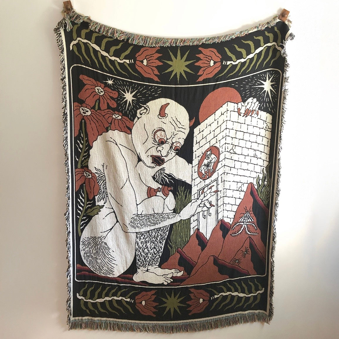 Description: Jacquard woven tapestry; 54" x 72" (137cm x 182cm). Woven in USA from 95% cotton (75% recycled) and 5% polyester. ($300)
