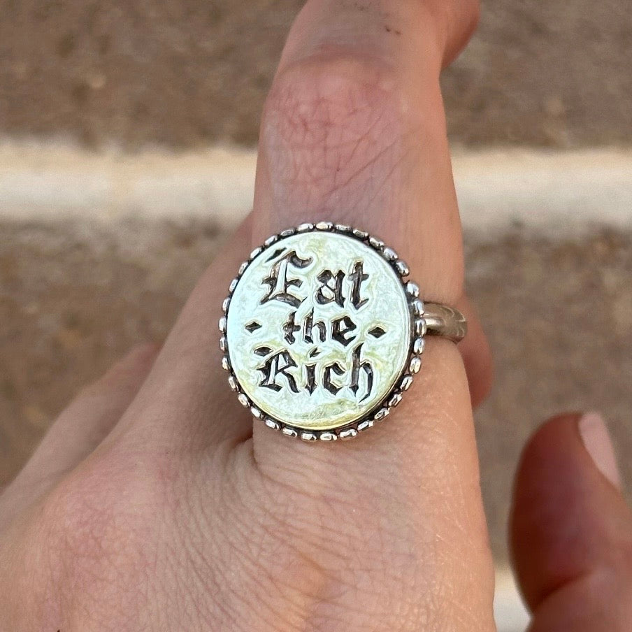 -“Eat The Rich” custom sterling silver ring or pendant by Lovespell